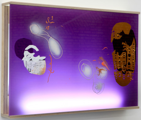lightbox (acrylic and collage on Plexiglas in wooden frame)